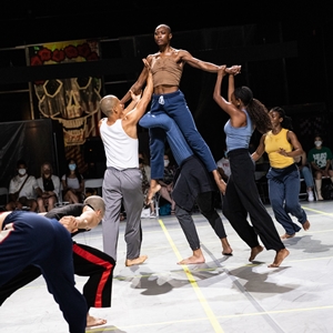 Wiles developed the Works & Process commission, New York Is Burning for his company, Les Ballet Afrik, in a summer 2020 Works & Process bubble residency at Kaatsbaan Cultural Park, a spring 2021 Works & Process bubble residency at Catskill Mountain Foundation, and a January 2022 Works & Process LaunchPAD “Process as Destination” residency at The Church, Sag Harbor in partnership with Guild Hall. Throughout this time, in some of New York State’s first permitted performances during the pandemic, Works & Process coproduced Les Ballet Afrik’s outdoor, filmed, and preview performances at Kaatsbaan Cultural Park, Lincoln Center for the Performing Arts, and the Guggenheim Museum rotunda and the world premiere in the Peter B. Lewis Theater. The company also performed previews at Jacob’s Pillow, New Victory Theater, and SummerStage. New York is Burning is a 2022 National Dance Project Finalists.
